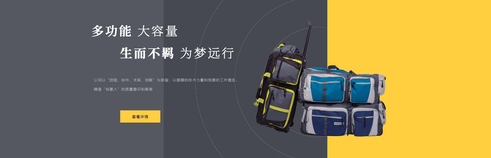 本公司是一家集設(shè)計(jì),制造,加工,貿(mào)易為一體的專業(yè)箱包生產(chǎn)出口企業(yè)。已有20多年箱包生產(chǎn)經(jīng)驗(yàn)。公司廠區(qū)位于中國(guó)浙江省海寧市鹽官工業(yè)園區(qū),占地15000平方米,建筑面積10000平方米,員工150人,年生產(chǎn)能力260萬只(套)。 公司以尼龍,滌淪,牛津布,P...